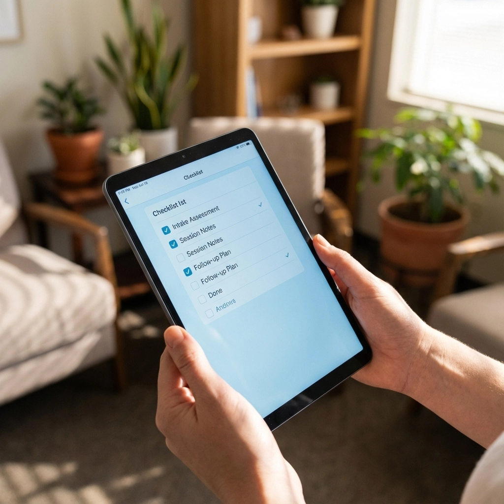 Pro tip: Build templates that pull forward previous session data, so clinicians only document changes rather than starting from scratch each time.
